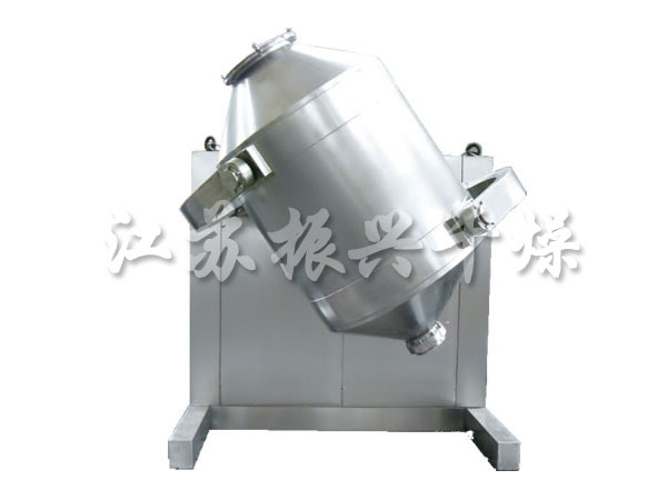 裝料的筒體(tǐ)在主動軸的帶動下,作(zuò)周而複始的平移、轉動和(hé)翻滾等複合運動,促使物料沿着筒體(tǐ)作(zuò)三向複台運動,從而實現多(duō)種物料的互相流動、擴散、積聚、摻雜.以達到均勻混合的目的。