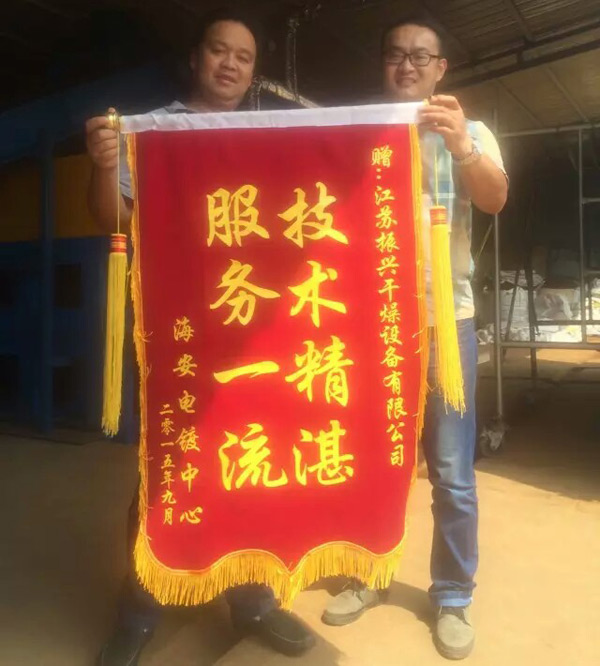 “技(jì)術(shù)精湛,服務^”, 又一面錦旗,是對我們幹燥設備産品的又一次認可(kě);是對我們售後服務的又一次認可(kě);同時(shí)又一次極大(dà)的鼓舞了我們的工作(zuò)熱情。