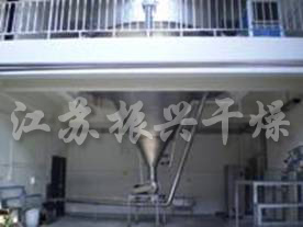 該生(shēng)産線由供料系統、介質循環系統、空(kōng)氣加熱淨化系統、幹燥塔系統、收料系統、控制(zhì)系統等多(duō)個(gè)系統整合而成。主塔系統集中了目前噴霧幹燥工程的所有(yǒu)尖端技(jì)術(shù),噴幹機組的收料系統由一級旋風分離器(qì)+布袋除塵器(qì)組合形成。一級旋風采用高(gāo)氣量高(gāo)效率旋風進行(xíng)收集,其收粉率能達到96%左右分,而布袋除塵器(qì)是針對蛋白粉類除塵專門(mén)設計(jì)的優化設備,能使物料與風進行(xíng)完全分離并沉降,布袋為(wèi)拒水(shuǐ)防油防靜電(diàn)布袋,過濾目數(shù)可(kě)達500目以上(shàng)。