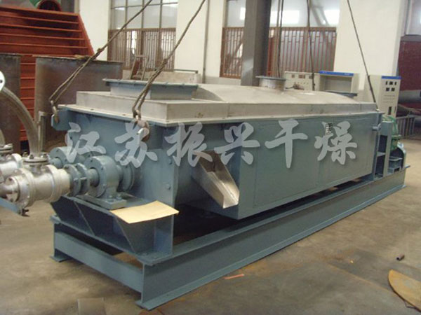 振興幹燥研制(zhì)的槳葉幹燥機,空(kōng)心軸上(shàng)密集排列 着楔型中空(kōng)漿葉,熱介質經空(kōng)心軸流經漿葉。單位有(yǒu)效容積內(nèi)傳熱面積很(hěn) 大(dà),熱介質溫度從-40℃到320℃,可(kě)以是水(shuǐ)蒸汽,也可(kě)以是液體(tǐ)型:如熱 水(shuǐ)、導熱油等。間(jiān)接傳導加熱,沒有(yǒu)攜帶空(kōng)氣帶走熱量,熱量均用來(lái)加熱 物料。熱量損失僅為(wèi)通(tōng)過器(qì)體(tǐ)保溫層向環境的散熱。楔型漿葉傳熱面具有(yǒu) 自清潔功能。物料顆粒與楔型面的相對運動産生(shēng)洗刷作(zuò)用,能夠洗刷掉楔 型面上(shàng)附着物料,使運轉中一直保持着清潔的傳熱面。漿葉幹燥機的殼體(tǐ) 為(wèi)Ω型,殼體(tǐ)內(nèi)一般安排二到四根空(kōng)心攪拌軸。殼體(tǐ)有(yǒu)密封端蓋與上(shàng) 蓋,防止物料粉塵外洩而充分發揮作(zuò)用。