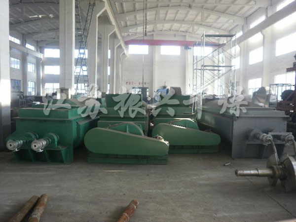 振興幹燥研制(zhì)的槳葉幹燥機,空(kōng)心軸上(shàng)密集排列 着楔型中空(kōng)漿葉,熱介質經空(kōng)心軸流經漿葉。單位有(yǒu)效容積內(nèi)傳熱面積很(hěn) 大(dà),熱介質溫度從-40℃到320℃,可(kě)以是水(shuǐ)蒸汽,也可(kě)以是液體(tǐ)型:如熱 水(shuǐ)、導熱油等。間(jiān)接傳導加熱,沒有(yǒu)攜帶空(kōng)氣帶走熱量,熱量均用來(lái)加熱 物料。熱量損失僅為(wèi)通(tōng)過器(qì)體(tǐ)保溫層向環境的散熱。楔型漿葉傳熱面具有(yǒu) 自清潔功能。物料顆粒與楔型面的相對運動産生(shēng)洗刷作(zuò)用,能夠洗刷掉楔 型面上(shàng)附着物料,使運轉中一直保持着清潔的傳熱面。漿葉幹燥機的殼體(tǐ) 為(wèi)Ω型,殼體(tǐ)內(nèi)一般安排二到四根空(kōng)心攪拌軸。殼體(tǐ)有(yǒu)密封端蓋與上(shàng) 蓋,防止物料粉塵外洩而充分發揮作(zuò)用。